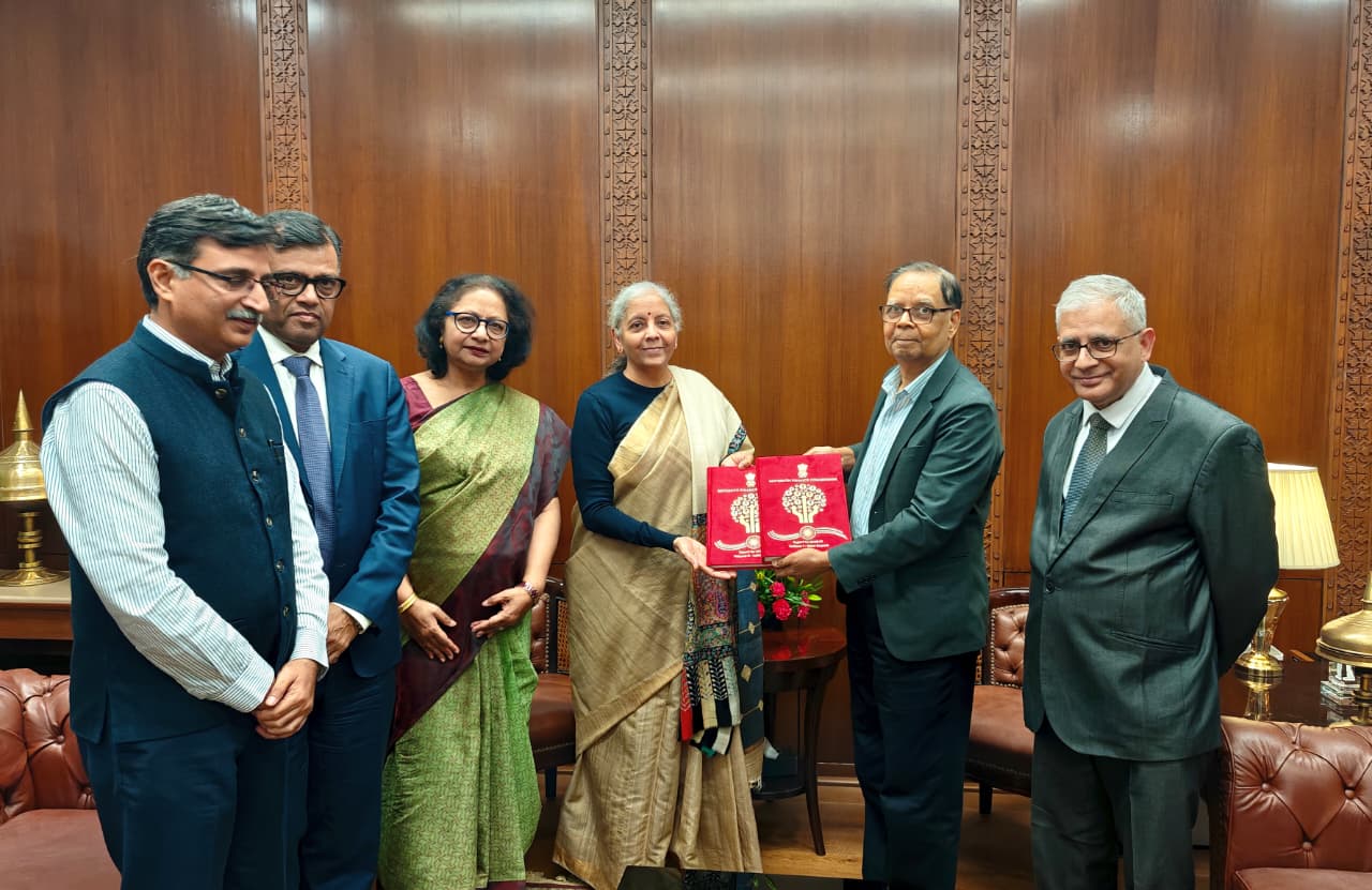 The Sixteenth Finance Commission (XVIFC) was constituted by the Hon’ble President of India in pursuance of clause (1) of article 280 of the Constitution. The XVIFC, headed by Chairman Dr. Arvind Panagariya, submitted its Report today to the Hon’ble President of India. Members of the XVIFC, Smt. Annie George Mathew, Dr. Manoj Panda, Shri T. Rabi Sankar and Dr. Soumyakanti Ghosh and the Secretary to the XVIFC Shri Ritvik Pandey accompanied the Chairman. Thereafter, the XVIFC also presented a copy of the report to the Prime Minister and to the Union Finance Minister today.